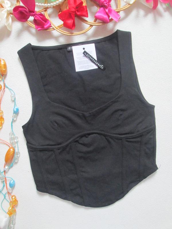 Шикарный хлопковый чёрный топ корсет Stradivarius 💜💖💜 ✔ Новый. Есть незначительный нюанс фото 3. Размер S. ✔ Ориентируйтесь на замеры. Высота 40 см . Длина спереди посредине 25 см. Боковой шов 17 см. Полуобхват груди 33 см + тянется до 49 см. Полуобхват по низу 30 см + тянется до 46 см. Тянется. СОСТАВ: 96% хлопок, 4% эластан. Вещи Сток и Секонд Люкс !!! ОБМЕНА и ВОЗВРАТА НЕТ! ФОТО на ТЕЛЕ НЕ ДЕЛАЮ! ДОСТАВКА: Наложенного платежа НЕТ! Отправка НОВОЙ ПОЧТОЙ или УКРПОЧТОЙ !! ВАЖНО! Перед покупкой прошу ознакомьтесь с условиями в разделе "обо мне" https://shafa.ua/member/svikkka/about