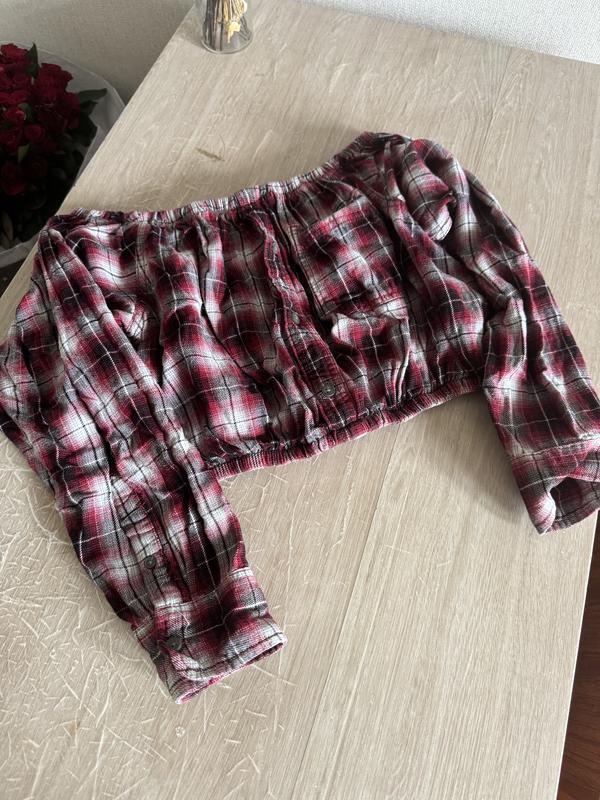 Очень крутой и эффектный топ в клетку на резинках, плечи можно поднять или опустить. Подойдет на размер хс-м.