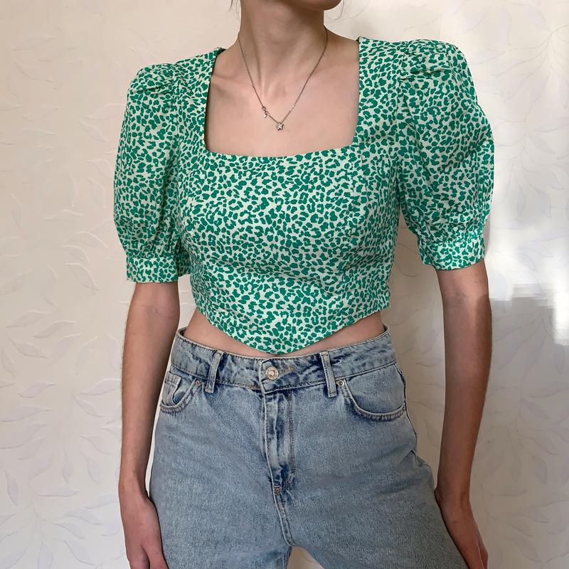 TOPSHOP размер 10/s-m 179 грн 💸 Зеленый хлопковый топ в анималистический принт, как новый, сбоку на молнии ❤️ плечи 34 см рукав 34 см пог 43 см длина 38 см состав: 100% cotton