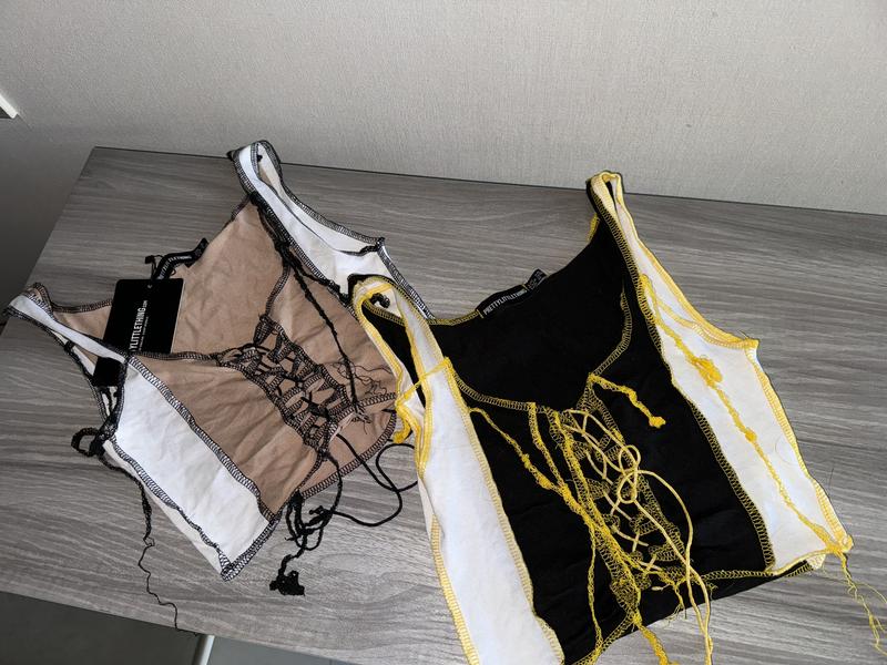 Красиві топи нові від англійського бренду PrettyLittlething По 350 грн 🌹 Розмір: s Ширина: 33 см (регулюється шнурівкою) Довжина: 35 см