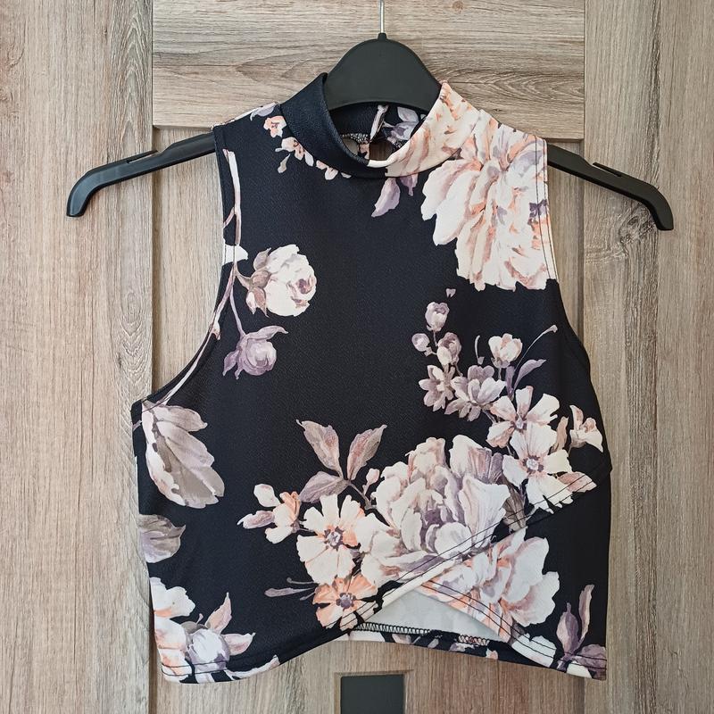 Кроп топ в цветы в азиатском стиле New look Новый, с этикеткой Сток, может иметь запах обработки, пойдет после стирки Стильная вещь с изюмом Плотная эластичная фактурная ткань Воротник стойка, сзади на двух пуговицах Асимметричный низ, имитация запаха Красивые цветы Классно смотрится снизу с высокой посадкой Размер 12 евро 40 Длина 41см, плечи 25см, под руками 41см, по низу 37,5см