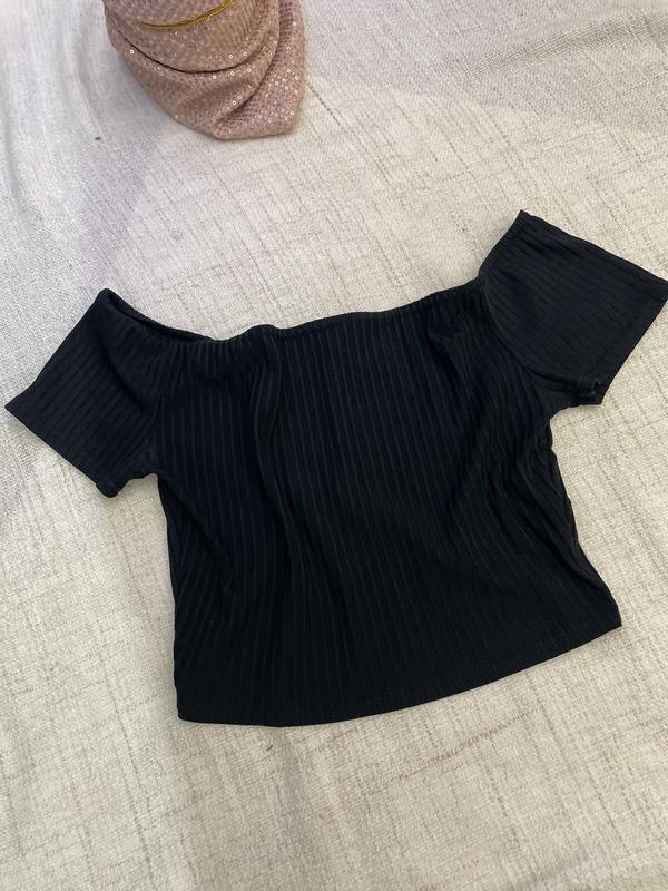 Топ черный рубчик Плечи приспущенные Стильный и современный Стан нового р10 Ширина 39-42 Длина 30