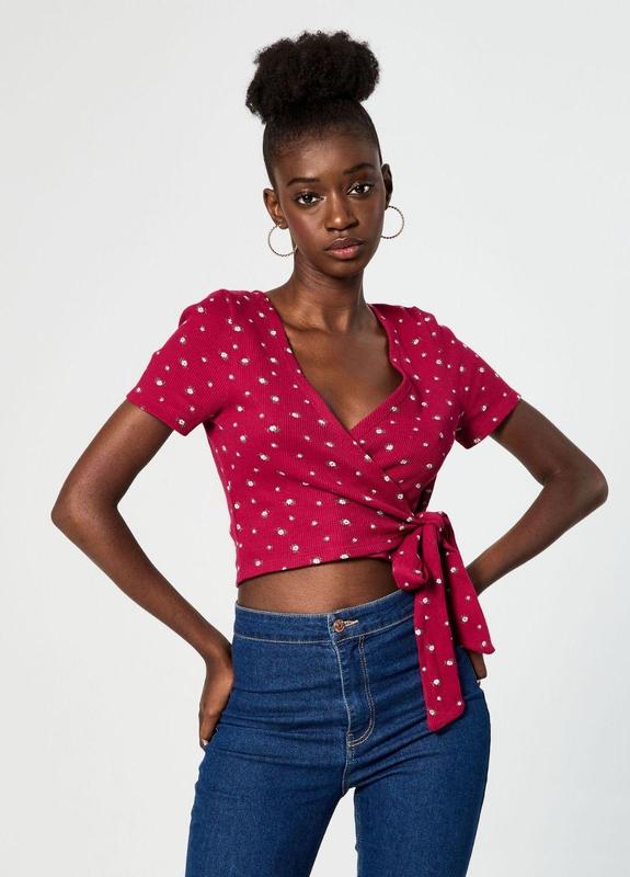 Топ на запах темно розовый в цветочный принт, don’t call me jennyfer