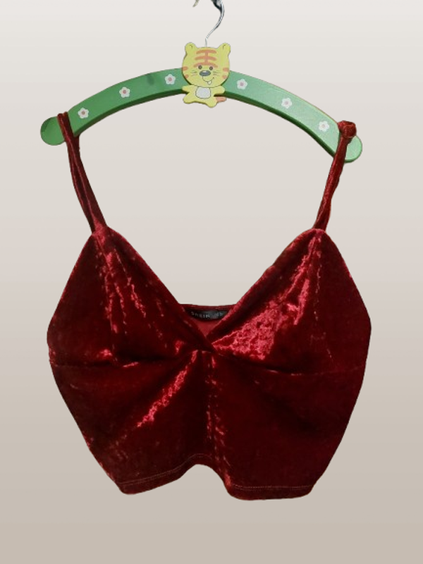 Червоний бархатний топ SHEIN на брителях що регулюються. Модель розмір S, бюст 75В