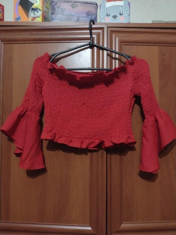 Гарний топ резинка. С рюшами на рукавах.