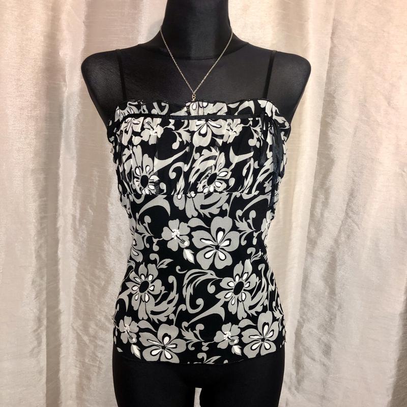 винтажный топ в цветочный принт vintage 2000s y2k🖤🩶 размер xs/s бренд xanaka замеры: полуобхват груди 34см, тянется до 40см длина 41см также смотрите другие мои объявления💋💖