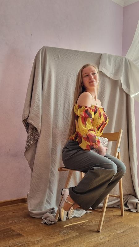 Шифоновый топ с цветами и открытыми плечами и свободными рукавами. ТРОХА ПРОСВЕЧАЕТ! Без нюансов