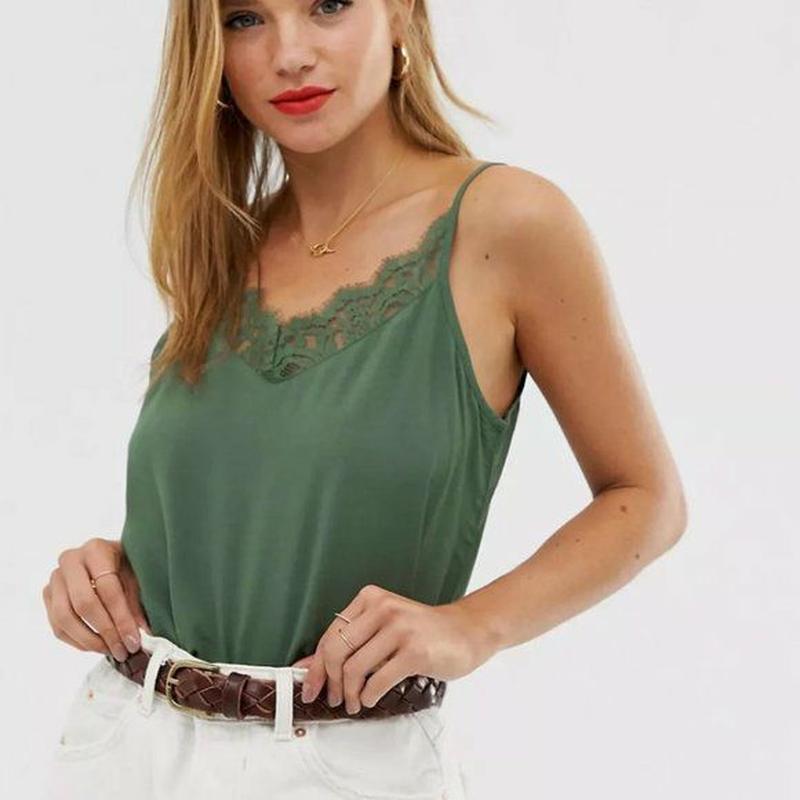 Франция, бренд jacqueline de yong женский топ, майка с кружевом на брителях темного зелено...