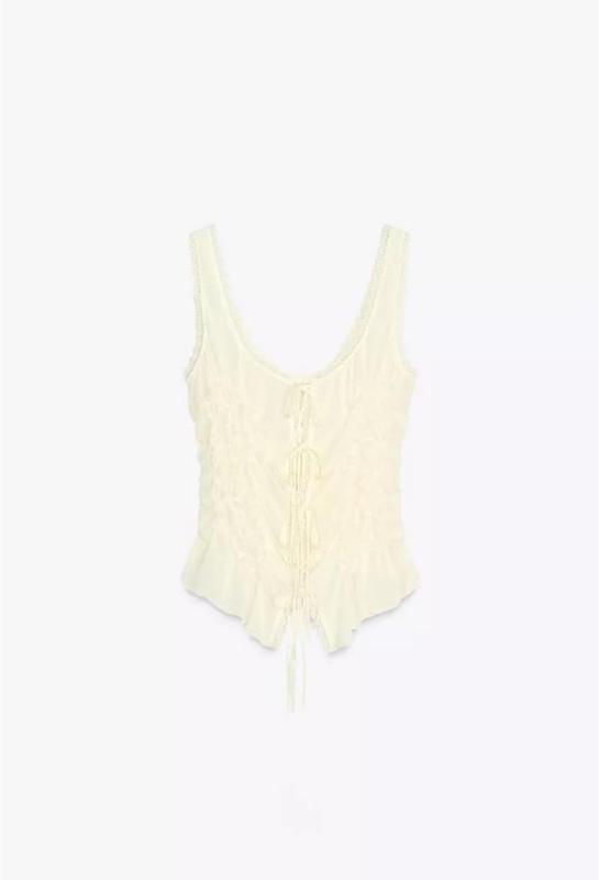 Топ со сборками, круглым вырезом и бретелями. Вырез с завязками спереди. Асимметричный низ. Желтый | 1937/304/300