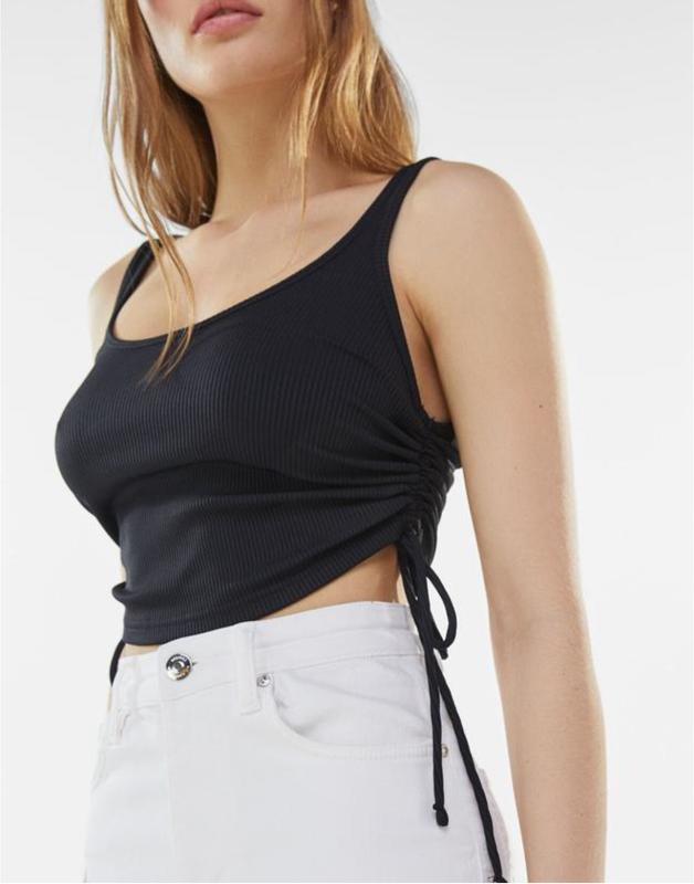 Продам красивый черный топ бренда Pull&Bear!) По бокам есть затяжки, можно регулировать длину ) Рубчик Размер М, Пог - 33, тянется