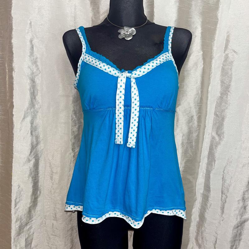 винтажный топ с завязкой в горошек vintage 2000s y2k 🩵🤍 размер 40 бренд denim co материал коттон замеры: полуобхват груди 40см, тянется до ≈ 55см длина 39см также смотрите другие мои объявления💋💖