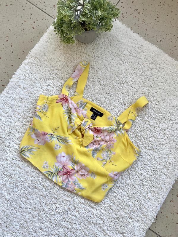 Жовтий укорочений топ із квітковим принтом та зав'язками спереду New Look M/L Заміри: пог 46 довжина 39