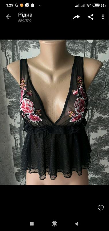 Черный прозрачный кружевной кроп-топ с цветочной вышивкой ПОг 41 см