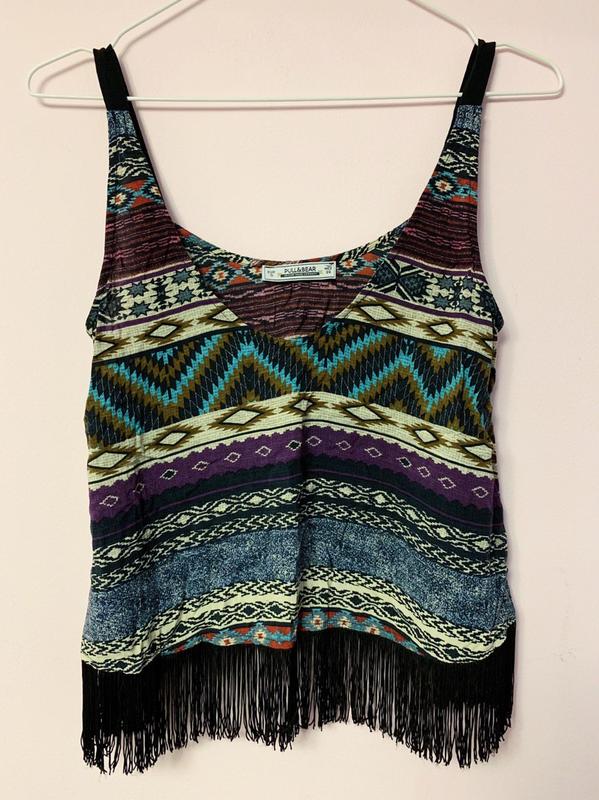 Топ-трапеция с бахрамой по подолу на тонких бретелях