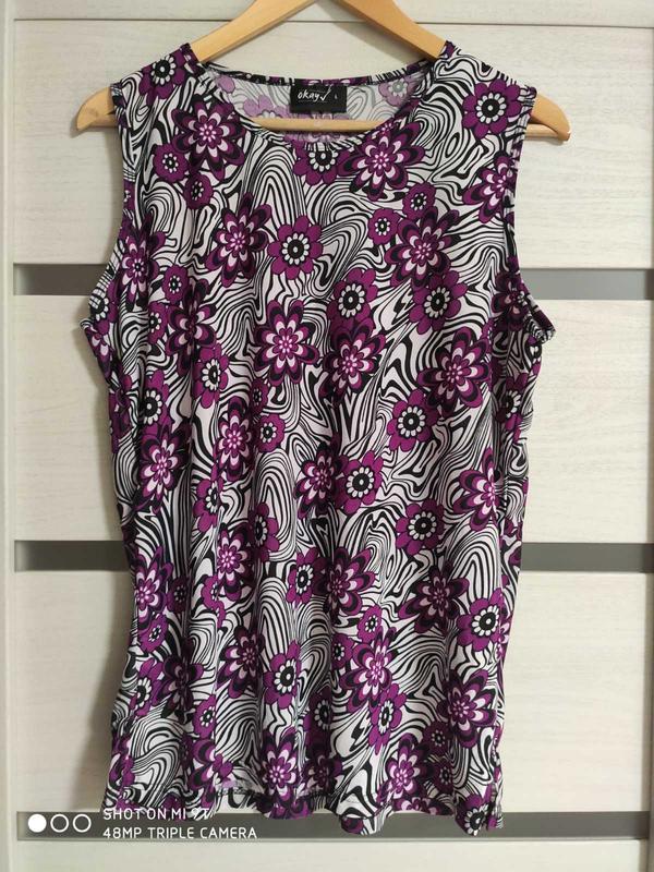 Топ Okay розм.L Склад: 97% поліестер, 3% еластан ПОГ-52см ПОТ-50см пройма-25см довжина по спині-67см. Стан - новий (без паперової бірки).