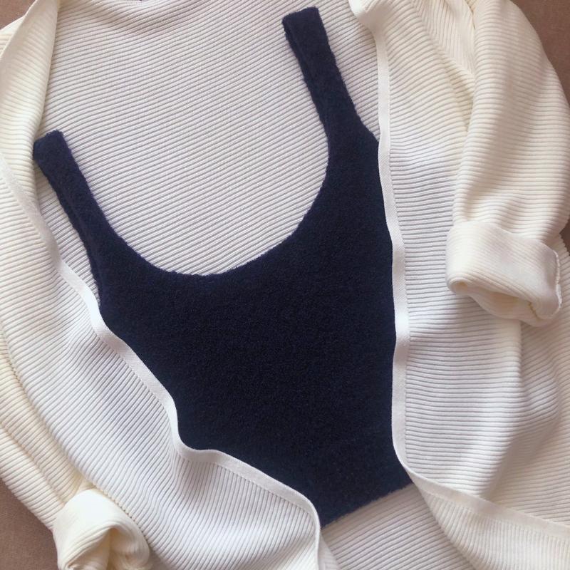 Кроп топ / майка новий, ручна в’язка, темно- синього кольору із мікро букле, має трішки стрейчевий ефект, на розмір S-M. Склад: 80% мериноса, решта Па. ПОГ- 37см, вся довжина 44см, ширина бретелі 3 см.