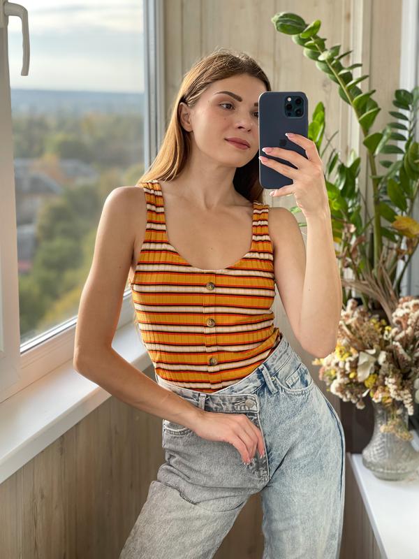 Полосатый топ в рубчик 💛пуговки декоративные 💖фирма: New Look 💖размер : 10 S/M 💖состав: 86% полиэстер,8% вискоза,6% эластан 💖ПОГ : 34,5 см (внатяжку 58 см) 💖Полуобхват низа: 37 см (внатяжку 61 см) 💖длина : 55 см Одето на размер S Фото на параметры:ОГ 84 см;ОТ66 см;ОБ90 см. Рост 1,66 м 🔥АКЦИЯ 1+1=3 🔥 ❗️выбирай 3 вещи, плати за 2 ❗️ * в подарок идёт товар с наименьшей стоимостью, если товары по одной цене , то любой из выбранных , в акции участвуют абсолютно все товары из наличия stock/sekond , за исключением новых товаров Bershka 🔥 ❗️ВАЖНО❗️Если Вы приобретаете несколько товаров по функции «Безопасная оплата» то каждый из них будет отправлен отдельной посылкой ❗️ Так же акция и скидки с таким способом оплаты невозможны ! ❗️Отправка только Новой почтой и Укр. Почтой❗️ ☝️Полная оплата/Наложенный платёж только с минимальной предоплатой 100 грн ☝️Отправка на следующий день после оплаты ☝️Обмена и возврата нет! Все интересующие вопросы уточняйте,пожалуйста, до того как совершаете оплату !😌 Все замеры указаны в описании( сверяйте, пожалуйста, их); все вещи корректируются прищепкой под параметры модели, цвет может незначительно отличаться, из-за цветопередачи на разных устройствах и освещения ; так же обращайте внимание на состояние вещи указанное в объявлении и наличие дефектов ☝️Бронь только на оплату 24 часа, после истечения срока бронь снимаю и оплата больше не принимается