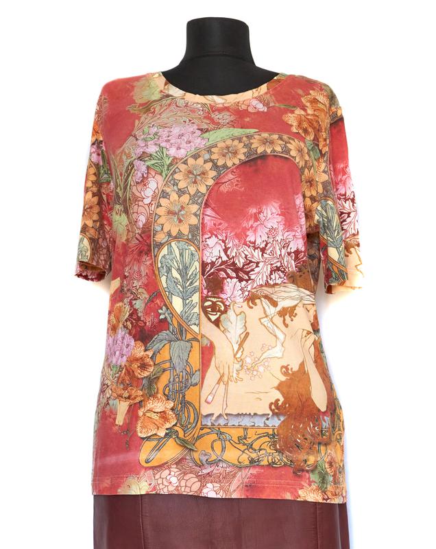 Жіночий топ із барвистим художнім малюнком Tristano Onofri розмір XXL, виготовлено в Італії 95% Viscose, 5% Elastane • довжина 60 см • ПОГ 47 см