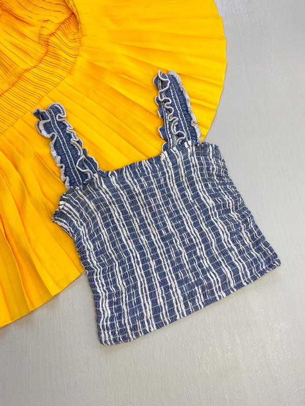 💙 Летний топ на прорезиненой основе Бренд: Hollister Состав: 100%вискоза Размер: S ✨ очень эластичный, резинки хорошо тянутся Замеры: Полуобхват в груди 28см Длина 35см ❤ СНИЖКА -5% НА ПЕРВОЕ ЗАМЛЕНИЕ нашим ПОДПИСАНИЕМ! ❤ Представляем только надежную информацию, и Честую консультацию ❤ Бесплатная доставка при покупке от 3од ❤ Открытка мгновенная НОВОЙ <unk> MEEST <unk> или УКР по почте. В м. Черкасы можно убрать заказ самовывозом (из 10:00-18:30, район семисотлетия). Оплата по желанию: полная оплата на карту, НАКЛАДЕННЫЙ платеж, БЕЗОПАСНАЯ оплата от Шкафа