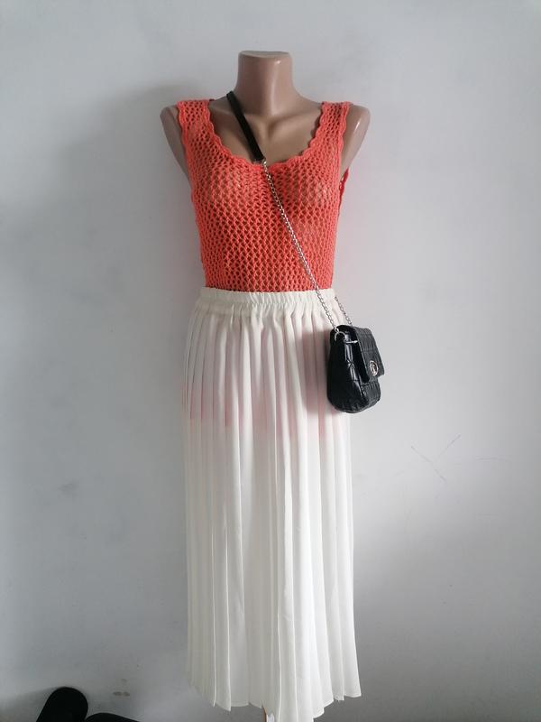 🌺Стильний, актуальний топ 🌺Кораловий відтінок 🌺Сітка, кроше 🌺Приємний на дотик (акрил, віскоза) бірка зрізана 🌺На фото вдягнений на манекен з параметрами XS, S, на тілі фото не має, обмін і повернення не передбачені, оплата на карту приват, відправки кожного дня (укрпошта, нова пошта) 🌺☺️ 🌺Пог 41см(тягнеться) поб 45см,довжина 57см,вказаний розмір 10