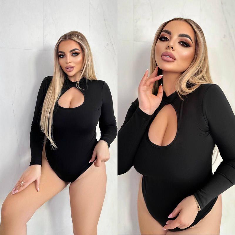 Женский боди из микродайвинга с декольте капелька с длинным рукавом размеры батал
