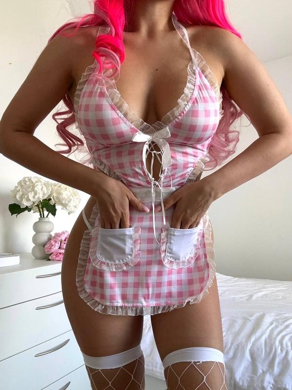 👆🏻👆🏻👆🏻 🍭Хто сказав, що на кухні не буває гаряче? У цьому комплекті навіть чайник закипить від тебе 😏 👩🍳 Образ сексуальної покоївки/кухарки в ніжному стилі baby doll DO3786 (костюм) 💗 У комплекті: 👗 Пікантний фартушок у рожеву клітинку з глибоким декольте, ніжними воланами і акцентом на талії 🧁 Декоративні кишеньки - кокетливі й сексуальні одночасно 💋 Перука кольору Barbie Pink - додає грайливого вайбу, робить образ незабутнім 🕸️ Сітчасті білі панчохи - фетиш-елемент, який підкреслює ніжки і настрій 🔥 📍Розміри: S: груди 85-90, стегна 86-95, М: груди 90-95, стегна 95-100 L: груди 95-99, стегна 100-105