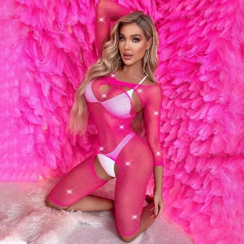 Комбинезон,сетка,с камнями,с открытым доступом,бодистокинг