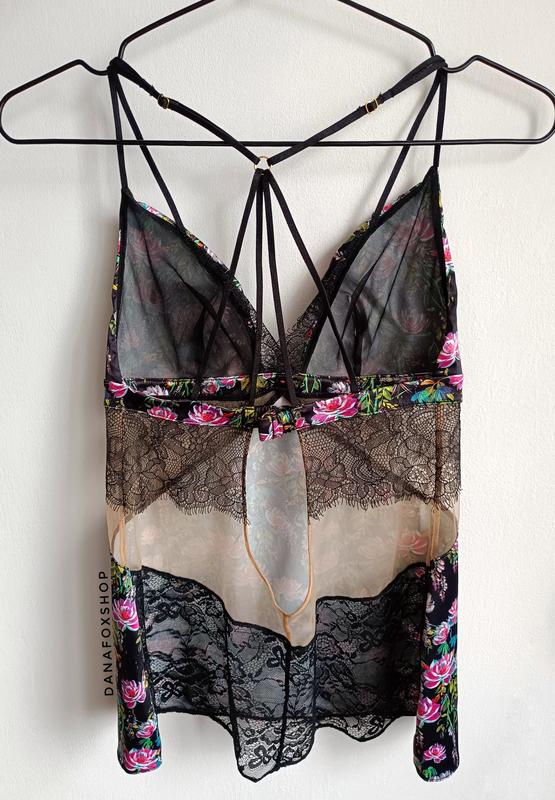 Бельеная майка атласная в цветы, с кружевом ann summers, xs/s