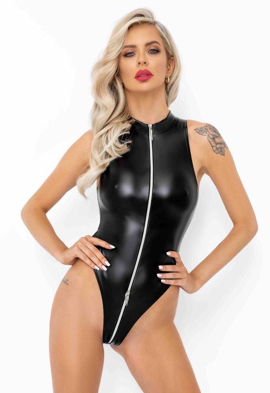 Боді з мокрим ефектом noir handmade f294 powerwetlook bodysuit with front zipper, 3xl