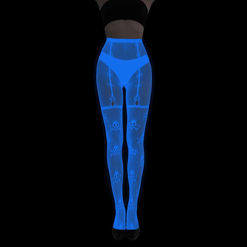 Женские колготки в сеточку, которые светятся в темноте, для этого их нужно подержать некоторое время на свету. Размер - универсальный ПОТ - 25-55 см Цвет - белый