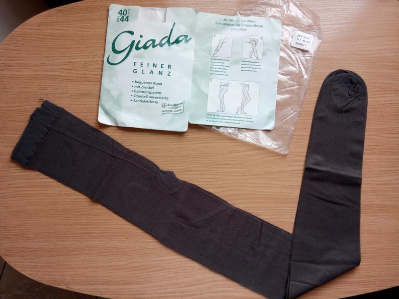 Якісні колготки 40 den M/L Giada feiner glanz містять Dorlastan від Bayer колір темно-сірий graphit, з легким блиском, з ласткою розмір вказаний ІІІ 42-44 фото розмірної сітки з інших колгот цієї марки (на оригінальній упаковці розмірної сітки немає)