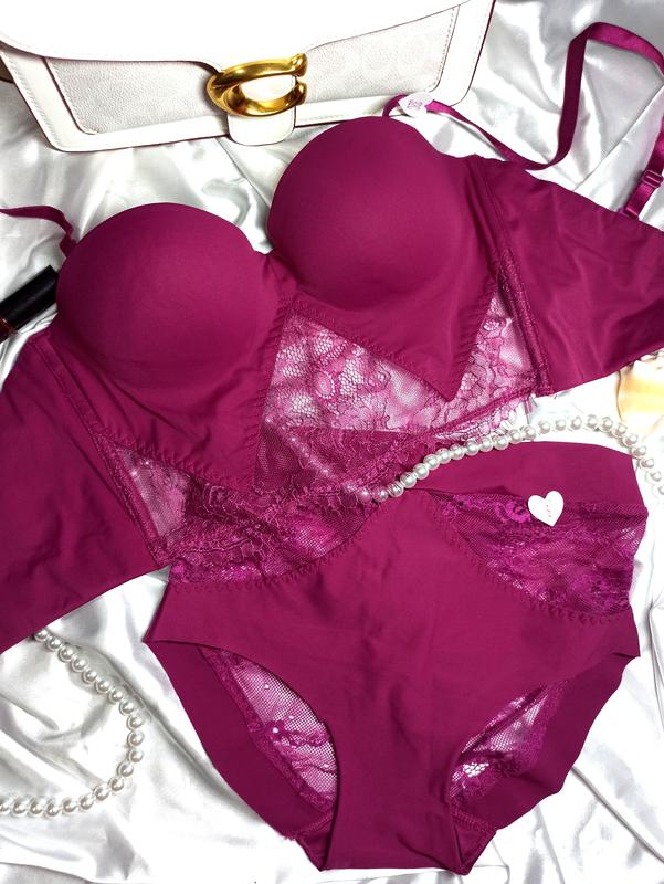 Комплект нижнего белья фуксия / малиновый балконет / корсет