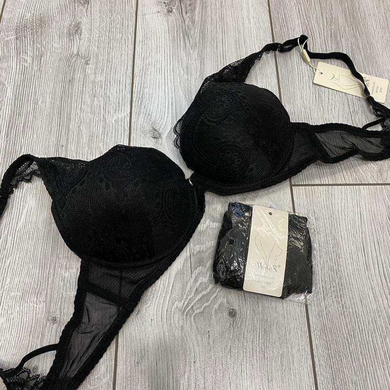 Цена указана за комплект Кружевной комплект белья Хорошее качество, красиво смотрюсь на теле Бюстгальтер имеет небольшой пушап (подкладку). Цвет: черный Трусики размер-М, L, XL На бюстгальтере С90 бирка сорвана На бюстгальтере и трусиках есть небольшие украшения спереди, при необходимости очень легко срезаются. За наличие уточняйте )