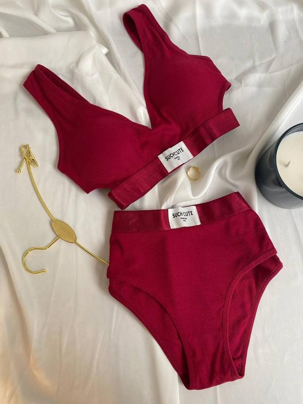 Бордовый комплект нижнего женского спортивного белья в рубчик к6615