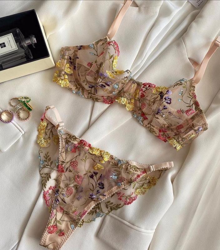 Женский цветочный комплект белья. Трусики L (100cm) Бюзгалтер 75В (86-91cm)