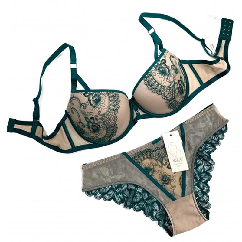 - Бежево-чёрный: 85В - Бежево-коричневый: 80В В шикарном комплекте ажурный бюстгальтер на корректоре. Трусики на средней посадке.