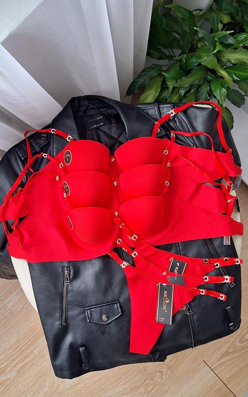 ⭐️Бесшовный гладкий комплект красного цвета. ⭐️Размер 80 ⭐️Чашка В ⭐️Трусики-стринги М/Л