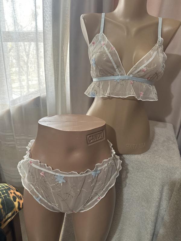 Бюстгальтер на чашку В. Клубьем под грудью -34 ( тянется до 50 см, резинка) Трусики - Пот -36 ( тянется до 44 см), посадка -29 см
