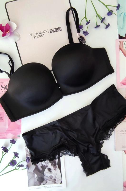 Комплект белья от любимого бренда Victoria ́s secret. Бюстгальтер : модель Very Sexy Bombshell Add-2-Cups Push Up Strapless Bra с двойным пуш ап эффектом для максимального объема.бюстгальтер имеет сьемные лямки, полностью просиликонечный, так что отлично подходит для ношения бандо. ❗32/70B ❗ 32/70C ❗ 34/ 75A ❗34/75B ❗34/75C ❗ 36/80B Трусики есть разные модели и размеры ❤️❤️❤️