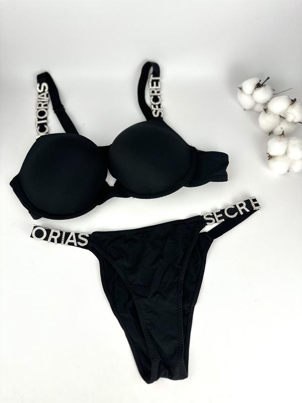 украшенными камнями. Бюстгальтер на поролоне Пуш-Ап-корректоре, бретели регулируются.