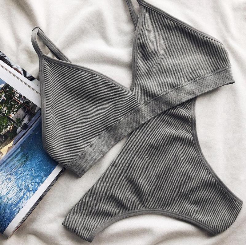 Набор микрофибровый бесшовный / набор нижнего белья серый (трусики + бюстгальтер)