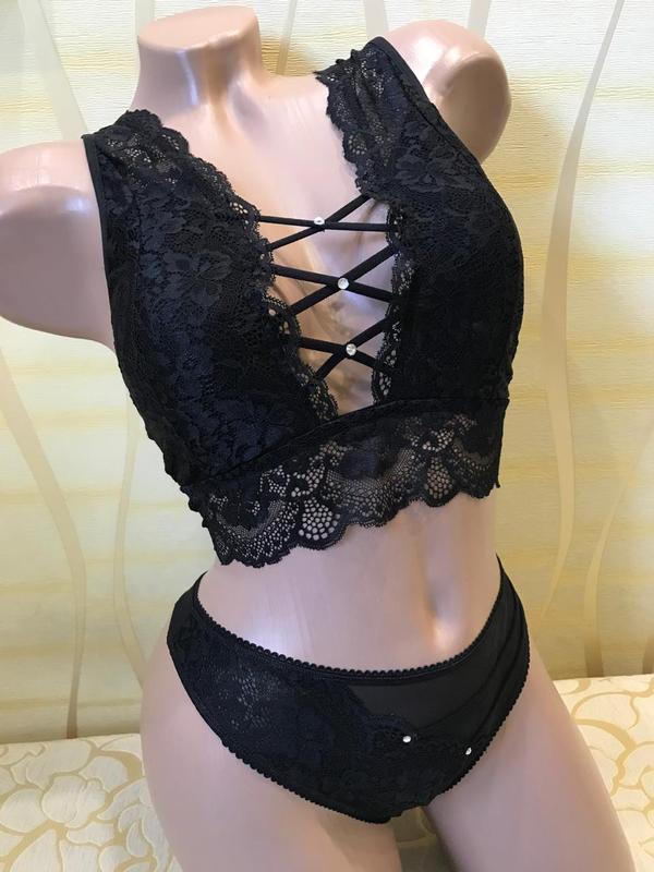 Цена 450 грн. ❣️Размер 85В/С/D. трусики L. Производитель Cotton Hill (Турция) Ажурный комплект, топ-браллет со вставными чашечками, спереди портупея со стразами, бретели регулируются. 🚛 Открытка по Новой почте. Оплата на карту или наложенным платежом с подпиской 200 грн., Безопасной оплатой Шкафы.