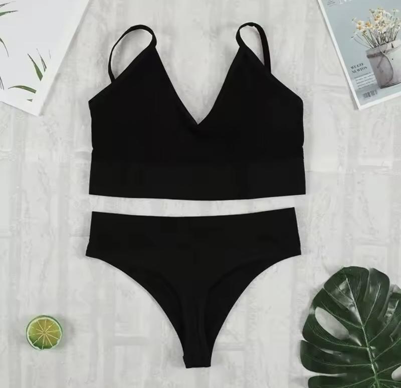 Базовый комплект нижнего белья черного цвета топ и трусы стринги