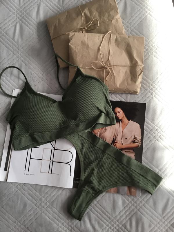 Базовый комплект в рубчик из топа и стрингов в красивом изумрудном цвете в размере l