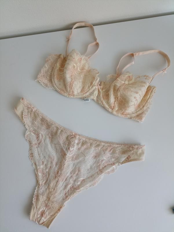 Чашечка балконет, полуоткрытая, мягкая Ширина 19, высота 10 Пояс в спокойном состоянии 68, максимальная натяжка 88 Трусики стринги размер 12/46