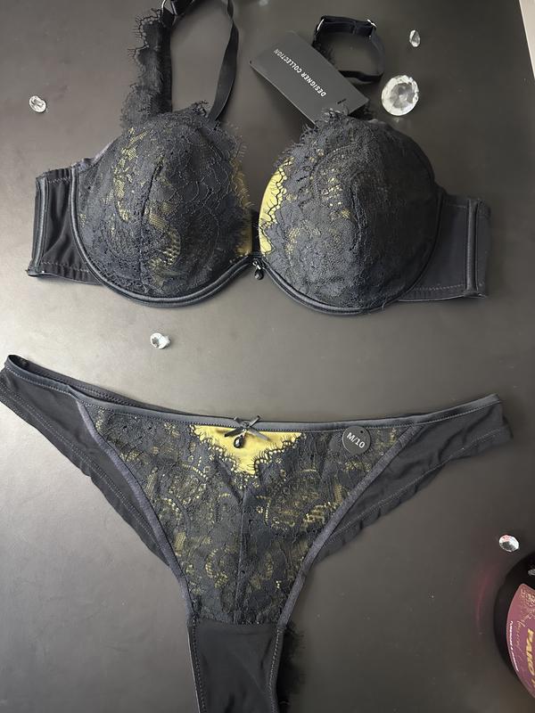 Ефектний комплект Hunkemoller Designer Collection — справжнє поєднання дизайнерської естетики та розкішних матеріалів. Витончене чорне мереживо у поєднанні з гладким сатином гірчичного кольору створює сміливий, стильний контраст, який виглядає надзвичайно дорого та нестандартно. Бюстик красиво формує груди та забезпечує комфортну посадку, підкреслюючи жіночність силуету. Трусики гармонійно доповнюють комплект, створюючи завершений та дуже ефектний образ. Цей комплект ідеально підійде для тих, хто цінує унікальний дизайн і хоче виглядати по-справжньому особливо. ✨ Бренд: Hunkemoller Designer Collection ✨ Матеріали: чорне мереживо та сатин гірчичного кольору ✨ Стиль: дизайнерський, ефектний, розкішний ✨ Розмір бюстика: 80C ✨ Розмір трусиків: M Комплект, який привертає погляди та підкреслює індивідуальність ✨💛