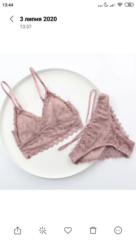 Новий мереживний комплект прекрасного благородного кольору пильної троянди, бюст 70 А, трусики S. Всередині тоненька паролонова чашечка. Трусики спереду не просвічують (є підкладка). Трусики S: напів'обєм в поясі 28,5 см, висота 21 см (середня посадка) Бра на об'єм 70, чашка A (підходить на А або А-B)