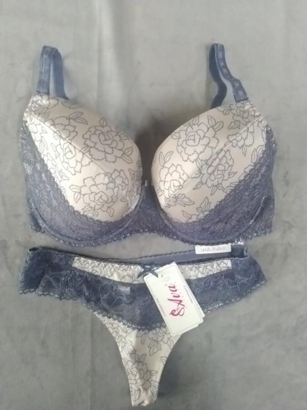 Комплект - бюстгальтер пуш-ап і стрінги, р.75F/S, Ava, Польша. В середині бавовна, подушечки виймаються, бретельки відщіпаються.Довжина кісточки 26см, глибина чашки по висоті 17см, по ширині 19см, ширина під грудьми 32-35см (нерозтягнуто-комфортне натягнення)