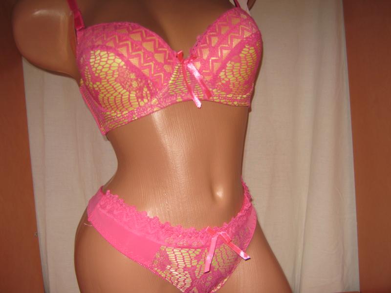 Красивый комплект белья ruying двухцветный - малиновый с желтым чашка в, декор из гипюра...