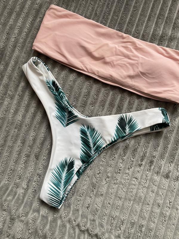 Купальник розмір С, верх ніжно рожевий , низ білий з принтом